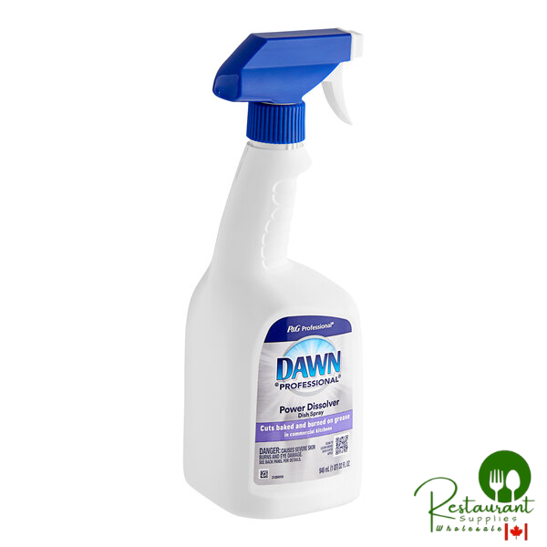 Make kitchen cleanup a breeze with this Dawn Professional power dissolver spray! This power dissolver cleaner efficiently cuts through grease, providing a quick and thorough clean for your dishes, kitchen surfaces, and appliances. The fast-acting formula reduces cleaning time, allowing your employees to focus on other tasks in your busy kitchen. Its patented solvent-based formula dissolves food residue and burnt-on, baked-on, and carbonized grease, leaving your dishes sparkling clean and your kitchen looking spotless.