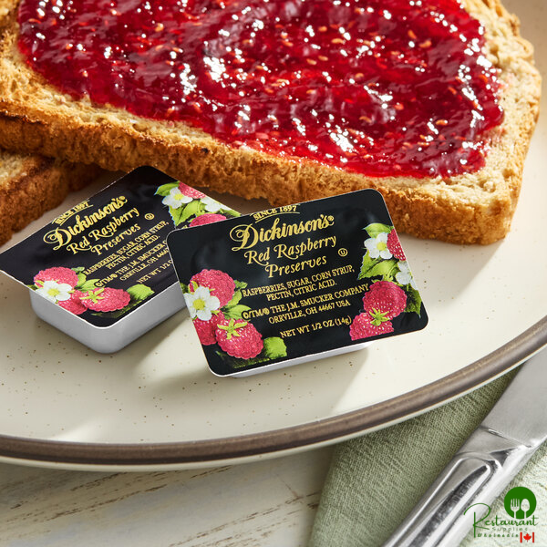 These lush preserves burst with the mouth-watering taste of tart, yet sweet, premium red raspberries. Dickinson's red raspberry preserves are flavorful and rich in red color, making them a delicious addition to exclusive breakfast services or in-room dining.
