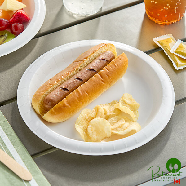 Offer convenient disposable dinnerware solutions with this Dixie Basic 8 1/2" light weight paper plate. Its lightweight construction is ideal for smaller snacks and meals, such as slices of pizza, cake, or a side of veggies.