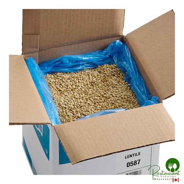 Enjoy the added nutritional benefits of cooking with dried beans and stock your restaurant or buffet with this 20 lb. bulk supply of dried lentil beans! These lentil beans will work perfectly with chili, soups, and different kinds of salads. Lentil beans are an excellent ingredient for adding subtle flavors and textures to a variety of foods, and their distinctive disk shape and bright color adds appeal to food presentation.