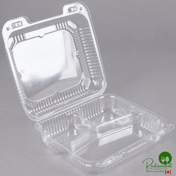 Send desserts, pastries, salads, and specialty sandwiches home with your customers in this versatile three-compartment Duralock container!