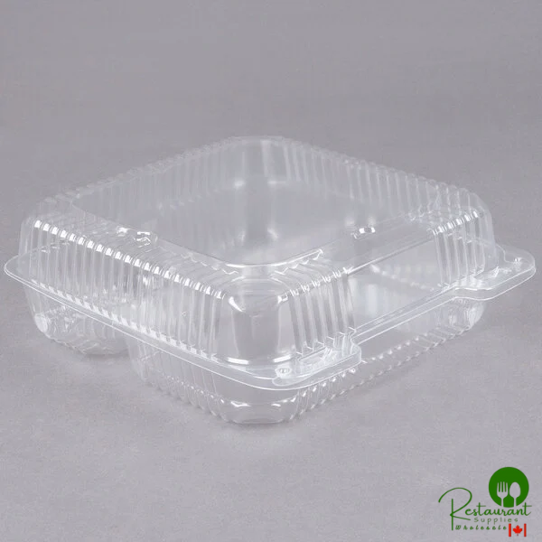 9" x 9" x 3" Three-Compartment Clear Hinged Container