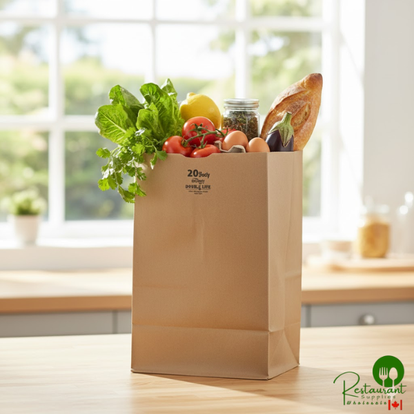 This Duro Husky Dubl Life 20 lb. shorty heavy-duty brown paper bag is a perfect bagging solution for gift shop purchases, food deliveries, and to-go items! Unlike standard paper bags, this bag has a 50 lb. basis weight to reduce the risk of tears or rips when packed with heavy items. Its rectangular bottom gives it the stability to stand upright on its own.