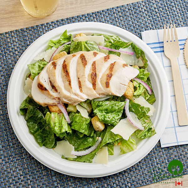 Serve salads and side dishes on this EcoChoice 10" compostable no PFAS added white plant fiber plate - the sustainable choice for modern food service.