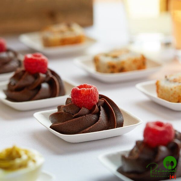 If you're looking for the convenience of disposable products without the environmental impact of plastic or foam, look no further than the EcoChoice 2 1/2" compostable white plant fiber square appetizer plate!