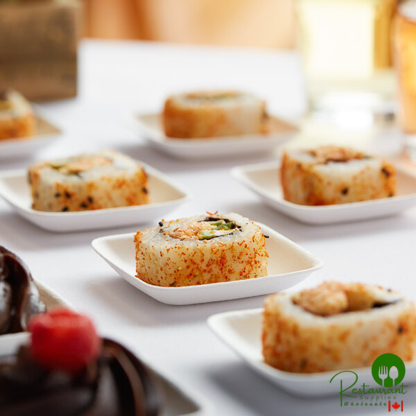 Add space-efficient elegance to your appetizers and sides with our modern square plates. Perfect for businesses that want to maximize efficiency while making environmentally responsible choices.