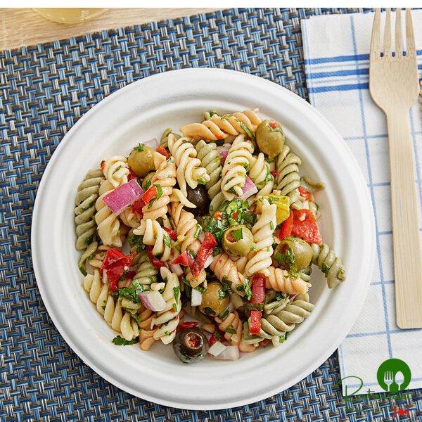 Perfect for both hot and cold foods, this plate is an ideal solution for quick-serve restaurants, caterers, and sandwich shops that need reliable, eco-friendly serving options for side dishes and desserts.