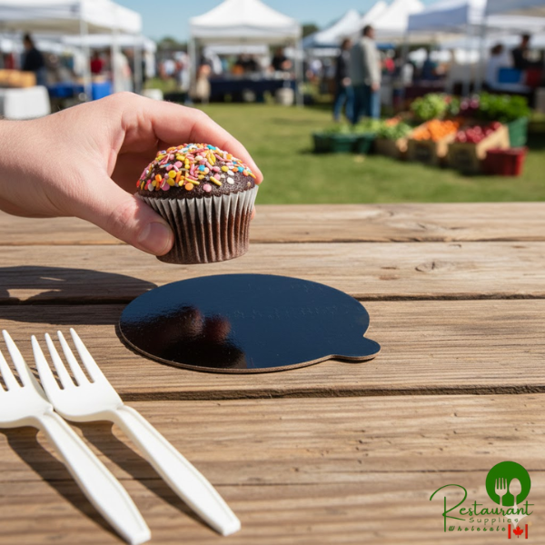 Versatile Applications: Ideal for larger cupcakes, individual cakes, tartlets, dessert cups, mini pies, and substantial single-serve dessert presentations in bakeries, catering operations, cafes, and upscale food service establishments.