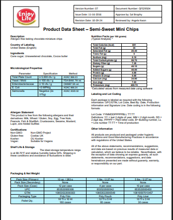 With a rich, indulgent dark chocolate flavor, these semi-sweet chips are great for creating sweet treats of all kinds! With a mini 4M size that's smaller than standard chocolate chips, these chips are great for packing tons of chocolatey flavor into your baked goods. Try using them to create allergen-free chocolate chip cookies and brownies that taste just as good as the original! You can even offer these mini chips as a topping at your sundae bar or frozen yogurt shop. These chips are also great for melting and are perfect for use in fountains and fondues. No matter how you choose to use them, these allergen-free chocolate chips are sure to be a hit with all your customers! They're packaged in a convenient 5 lb. bag for easy access and storage.