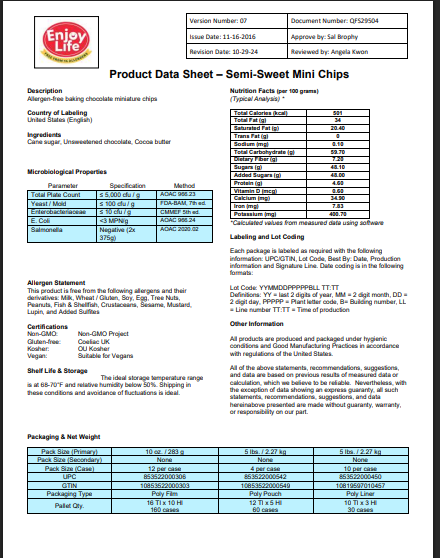 With a rich, indulgent dark chocolate flavor, these semi-sweet chips are great for creating sweet treats of all kinds! With a mini 4M size that's smaller than standard chocolate chips, these chips are great for packing tons of chocolatey flavor into your baked goods. Try using them to create allergen-free chocolate chips cookies and brownies that taste just as good as the original! You can even offer these mini chips as a topping at your sundae bar or frozen yogurt shop. These chips are also great for melting and are perfect for use in fountains and fondues. No matter how you choose to use them, these allergen-free chocolate chips are sure to be a hit with all your customers! This bulk 50 lb. bag is perfect for high-volume establishments and will keep you well-stocked with this essential ingredient.