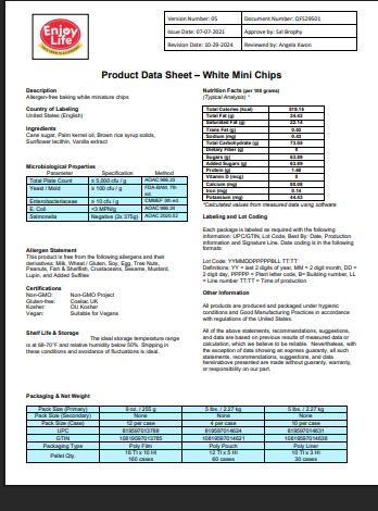 With a sweet, indulgent, velvety white chocolate flavor, these white chips are great for creating sweet treats of all kinds. With a mini 4M size that's smaller than standard chocolate chips, these chips are great for packing tons of white chocolate flavor into your baked goods. Try using them to create allergen-free chocolate chip cookies and brownies that taste just as good as the original! You can even offer these mini chips as a topping at your sundae bar or frozen yogurt shop. These chips are also great for melting and are perfect for use in fountains and fondues. No matter how you choose to use them, these allergen-free chocolate chips are sure to be a hit with all your customers! They're packaged in a convenient 5 lb. bag for easy access and storage.