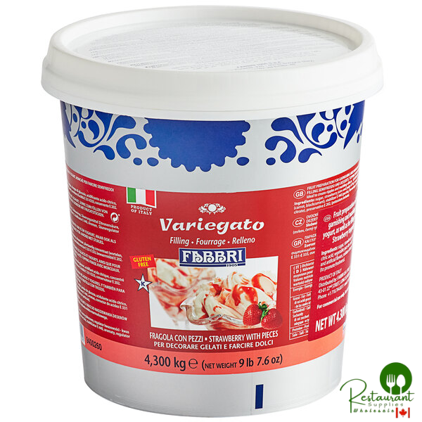 Add texture and depth of flavor to your frozen treats with this Fabbri strawberry marbling. This marbling makes it easy to offer hand-crafted, gourmet gelato and other frozen treats filled with ripples of sweet strawberry flavor and real strawberry pieces.