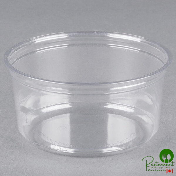 This container is also incredibly functional, with a smooth, rolled rim for easy lid attachment and made with materials that resist flavor or odor transfer. Highlight your special pastas, puddings, sauces, and other take-out deli items in this eco-friendly clear container.