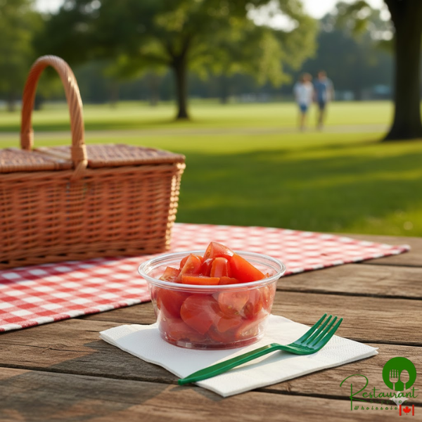 The Fabri-Kal Alur RD5 deli container is made of clear PET plastic to best merchandise your fruit, pudding, sauces, and other take-out items to eager customers! This round container holds up to 5 oz. of your most popular food, making it an excellent choice for supermarkets, delis, and salad bars. It is made from a minimum of 50% post-consumer recycled material to give you peace of mind in knowing that you're getting a fantastic product while maintaining a commitment to the environment.