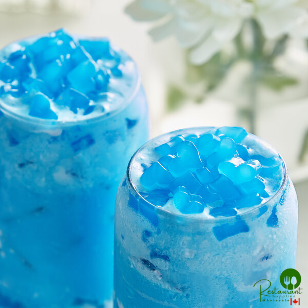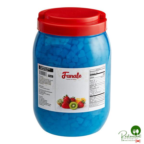 This Fanale blueberry heart-shaped jelly topping offers an easy way to add tantalizing texture to your signature beverages or desserts! Bursting with irresistible, sweet blueberry flavor, this product is made from the inside layer of a coconut, and it features a jelly-like texture that is slightly thicker than gelatin.