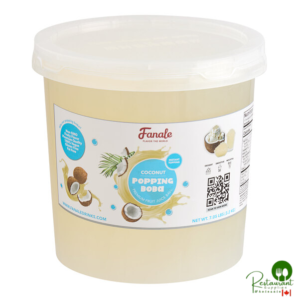 This versatile boba is commonly served with bubble tea and is also a great addition to smoothies and other cold beverages. Additionally, display these bobas at your frozen yogurt bar or as a creative topping for ice cream sundaes and shaved iced! With its simple, ready-to-use characteristic, it is easy to add this boba to virtually any product; simply scoop, strain, and enjoy! Plus, this Fanale boba is stored in a convenient, resealable tub to help maintain freshness, as well as to increase efficiency and convenience during service. Keeping your establishment in good supply, this 7.05 lb. container yields approximately (53) 60 gram / 3 tbsp. servings of popping boba.