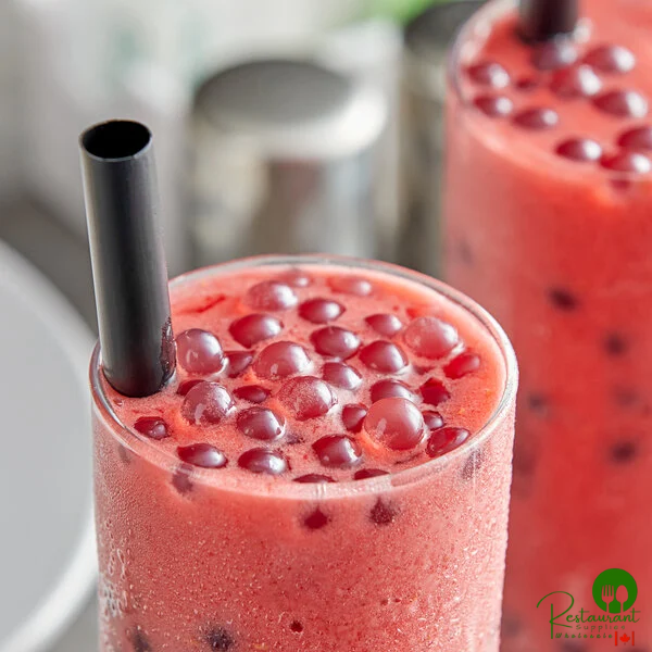 Each boba is packed with approximately 12 to 14% juice that bursts with a fruity, sweet raspberry flavor when bitten into, giving a dynamic texture to your beverage or dessert.