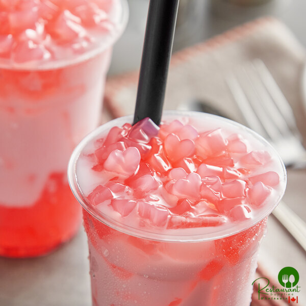 The heart-shaped jellies are an exciting alternative to traditional tapioca pearls or crystal boba. You can use this topping to add a perfect finishing touch to bubble teas or smoothies, or use it to add volume and value to other menu offerings like shaved ice, frozen yogurt, or ice cream. This delicious topping is a fun addition to any number of cold beverages and desserts.