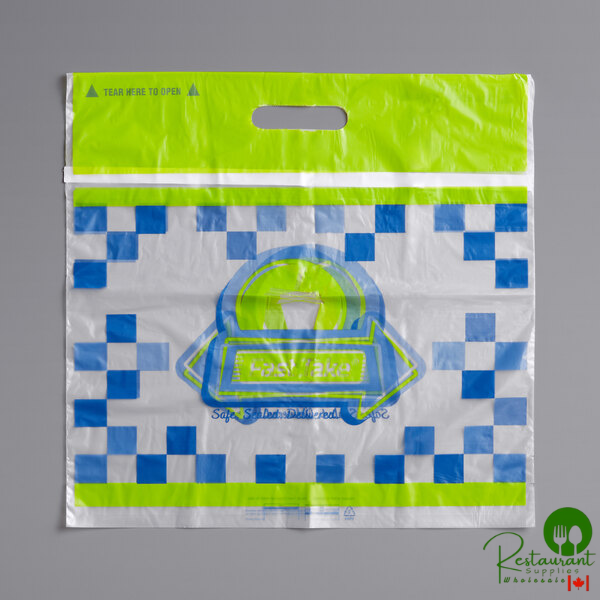 Serve up signature beverages to go with this Fast Take tamper-evident printed HDPE 2 drink beverage carrier. Unlike traditional beverage carriers, this bag reduces mess from accidental spills or tips by fully enclosing the beverage cup inside.