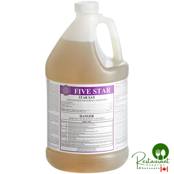 Ensure your brewing gear is properly sanitized and ready to use with Five Star Chemicals 26-STS-FS01-04 Star San high-foaming brewery sanitizer 1 gallon. This odorless and flavorless sanitizer is easy to use and won't affect the taste of your beer. Effective and economical, it's a great choice for any brewing operation.