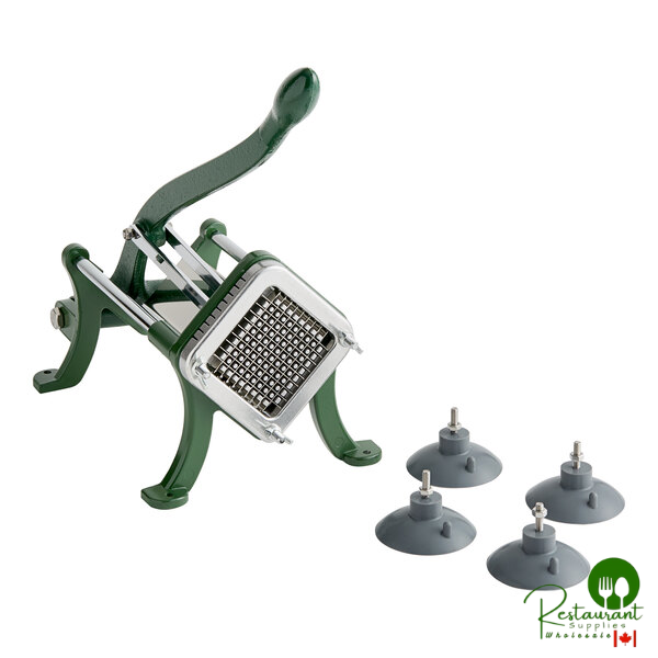 The integrated suction cup feet provide exceptional stability on various counter surfaces, allowing for safe, one-handed operation. The heavy-duty cast iron construction ensures durability while the efficient cutting mechanism produces restaurant-quality fries with minimal effort. Ideal for high-volume environments where consistency and speed are essential.