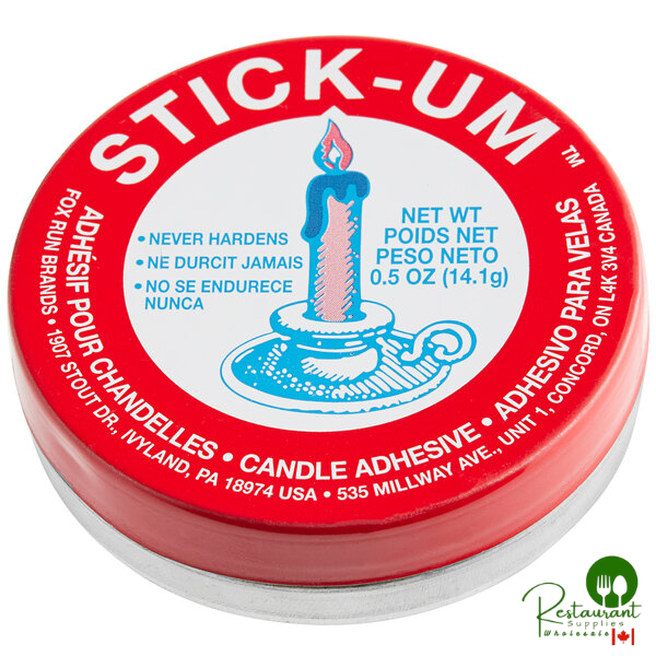 Secure your candles safely with Fox Run Stick-Um candle adhesive. This specially formulated wax adhesive holds candles firmly in place, preventing tipping hazards and messy cleanups.