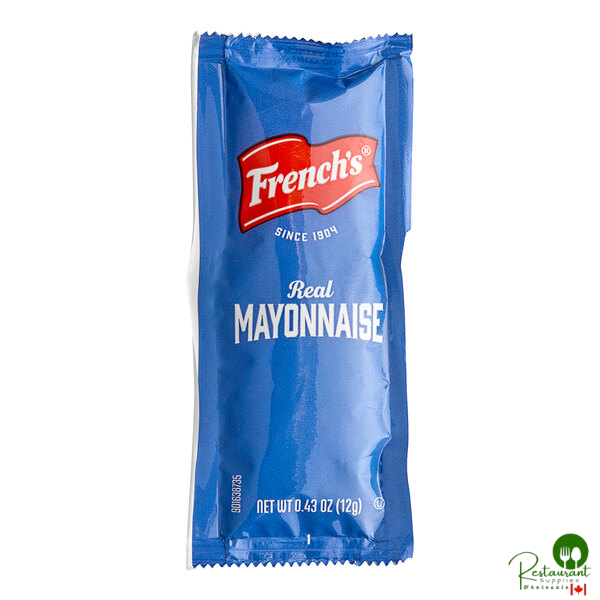 Provide patrons with brand-favorite condiments to complement your offerings like these French's mayo packets! This mayo is made using high-quality ingredients, including soybean oil, vinegar, egg yolks, salt, sugar, lemon juice, and mustard for a natural, slightly tangy and savory flavor with a creamy texture. Its rich, thick consistency is perfect for dipping or spreading while its versatile taste is perfect for complementing a variety of dishes and appetizers.