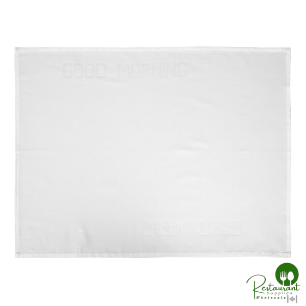 Invite your guests to a comfortable and relaxing experience with the Garnier-Thiebaut white good morning-good night bedside mat. Ideal for upscale hotels, bed and breakfasts, and resorts, this bedside mat is the perfect addition to a variety of settings.