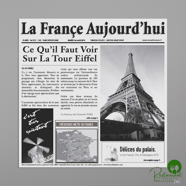 Perfect for adding Parisian charm to your food service operation while maintaining the highest food safety standards. The authentic French newspaper appearance creates an inviting, sophisticated atmosphere that complements artisanal foods and premium offerings.