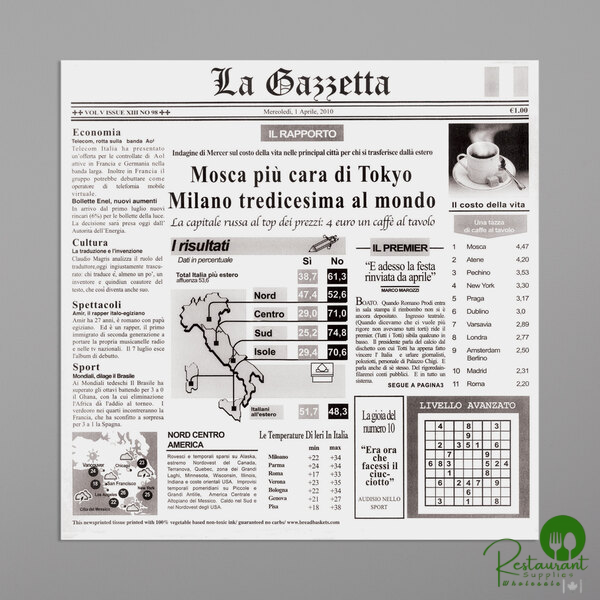 Authentic Italian newspaper design with food-safe soy ink for traditional European café-style presentations