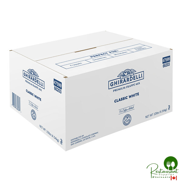 This Ghirardelli 10 lb. classic white frappe beverage base is perfect for blending up indulgent frappes at your coffee shop! This coffee-free mix is made with real milk for an irresistibly rich, creamy base that readily accepts custom flavors.