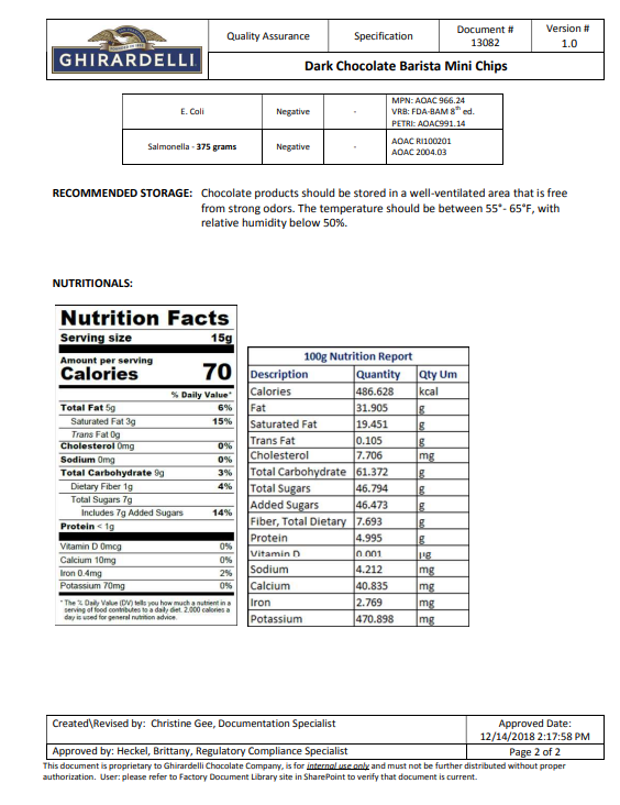 With a mini size of 10M, meaning there are 10,000 chips per lb., they are perfect for sprinkling throughout a variety of decadent desserts and drinks. Chips come in resealable bags and were specially developed for baristas to use in mochas, hot cocoas, or as a specialty drink topping, these chips enhance the presentation of your most popular coffee shop drinks. Plus, the 5 lb. supply is perfect for your high volume business!