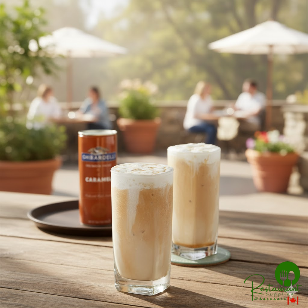 Perfect your signature espresso-based drinks with Ghirardelli 16 oz. caramel flavoring sauce! Made with premium ingredients, this sauce has a creamy, slow-cooked caramel flavor and velvety-smooth consistency for crafting your coffee shop drinks. Use it for lattes, frappes, milkshakes, and even frozen cocktails.