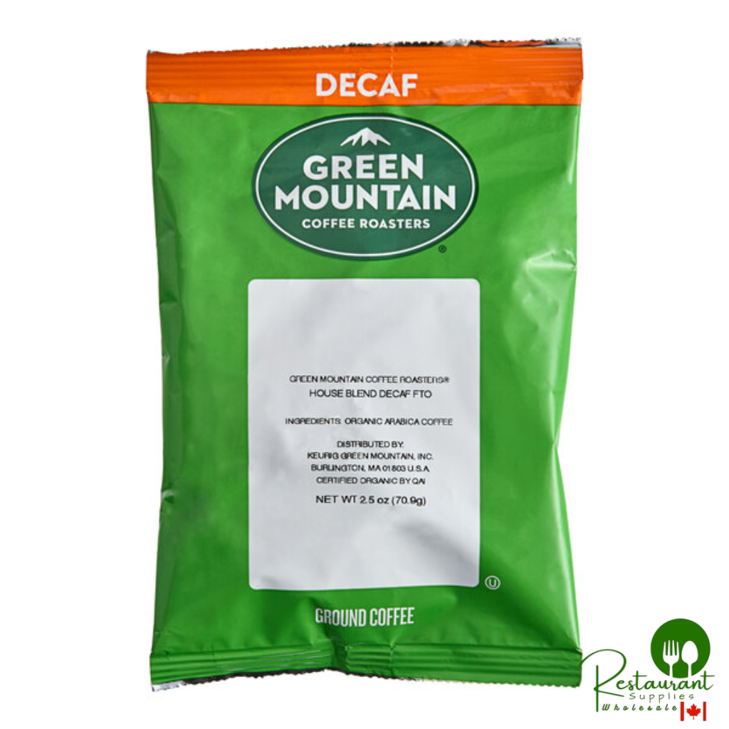 Help your customers start their day on the right foot with this Green Mountain Coffee Roasters decaf house blend coffee packet! Made with sustainably sourced, 100% arabica coffee beans, this blend is one that your customers will reach for again and again. This medium roast coffee has a smooth, mild flavor with pleasant notes of sweetness. With a complex yet balanced taste, this coffee is perfect for serving black or offering with cream, sugar, or a splash of flavoring syrup. Offering this decaffeinated option in your beverage lineup is a great way to ensure you're meeting the needs of all your customers.