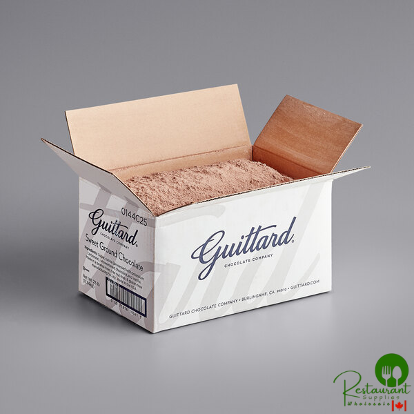 The Guittard 25 lb. 36% sweet ground chocolate powder has been carefully made from bean to cocoa, crafted with generations of French artisan chocolate-making experience. A classic Dutched cocoa that's made with real vanilla, this cocoa powder adds an iconic chocolate flavor to drinks and baked goods.