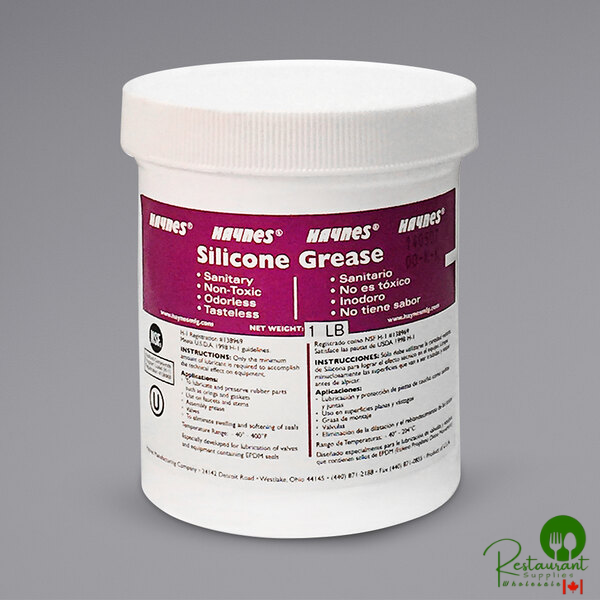Keep your equipment operating smoothly by using this Haynes 102 1 lb. synthetic lubricating silicone grease. Designed to guard against metal-to-metal contact that can result in costly damage to machinery, this item is perfect for busy restaurants, bars, bakeries, hotels, banquet hall kitchens, and large scale food packaging and processing facilities.