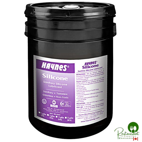 Keep your equipment operating smoothly with Haynes 105 5 gallon sanitary silicone lubricant spray. Designed for busy restaurants, bars, bakeries, hotels, banquet hall kitchens, and large-scale food packaging and processing facilities.
