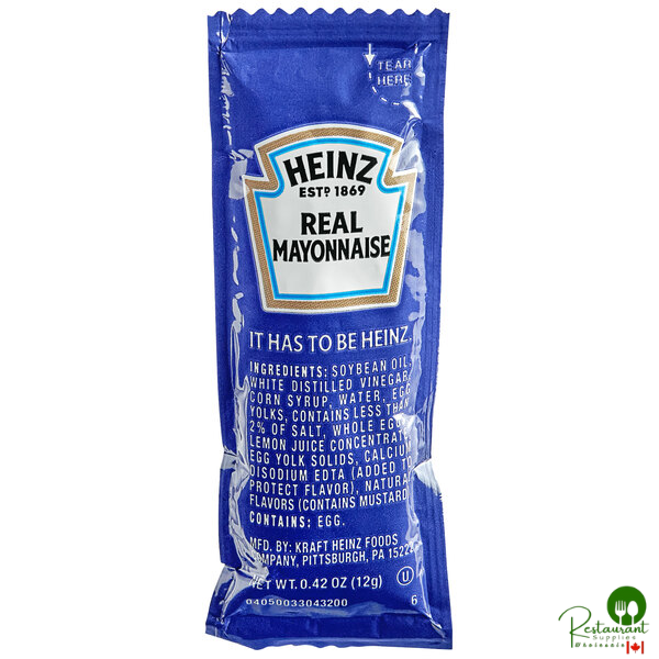 Allow customers to bring just the right amount of creamy, tangy flavor to your signature foods with these Heinz mayonnaise packets. Featuring a balanced taste and creamy, spreadable texture, this mayonnaise offers a convenient, versatile addition to your high-volume operation. These packets are staples at concession stands, catered events, cafeterias, and other self-service establishments and are great for spreading on sandwiches, wraps, and burgers. You can even serve it alongside crispy french fries as an alternative to ketchup for dipping!