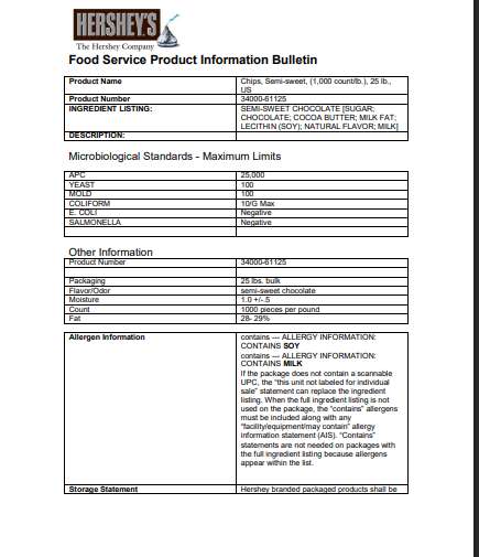 With a standard size of 1M, meaning there are 1000 chips per lb., they are perfect for sprinkling throughout a variety of desserts. Semi-sweet chocolate is a type of dark chocolate that has its own distinct taste with half as much sugar as cocoa. Not as sweet as milk chocolate, it works well for cooking and baking. It features a higher concentration of chocolate liquor for a decadent taste great to mix into batters or blend into dessert sauces!