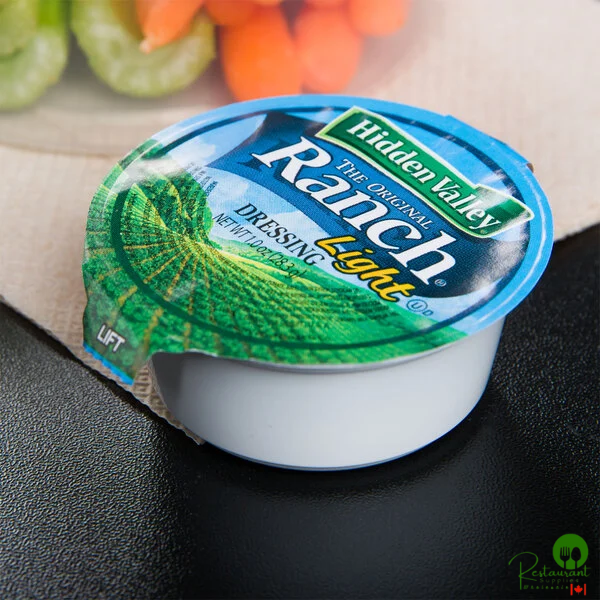 Stock up on these Hidden Valley 1 oz. light ranch dressing cups for your salad bar, restaurant, or catered event!