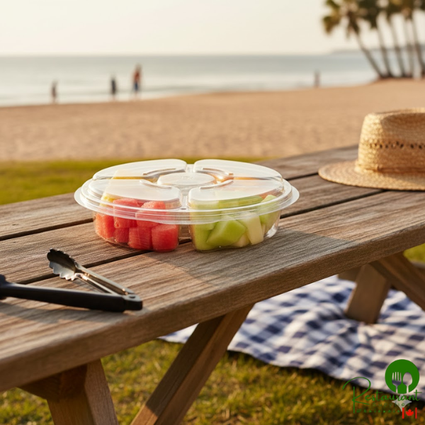 Ideal for catering companies, banquet services, hotel operations, retail delis, event planners, and institutional food service, this round compartment platter addresses the demand for organized, elegant food presentation solutions. The case quantity of 100 units provides exceptional value for operations requiring substantial volume while maintaining consistent quality and presentation standards.