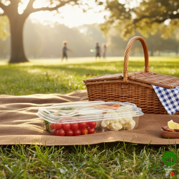 With a practical 56.48-ounce total capacity and compact 11" × 7" footprint, this platter is ideally sized for individual meals, snack boxes, and smaller presentations. The efficient rectangular shape allows for optimal space utilization in refrigerators, during transport, and on display tables.