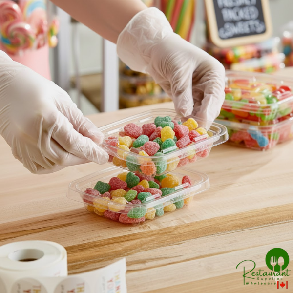 Salads, side dishes, baked treats, candies, nuts, bulk goods, and deli items. Perfect for deli counters, salad bars, grocery stores, grab-and-go stations, and convenience stores requiring secure, visible packaging with tamper-evident features.