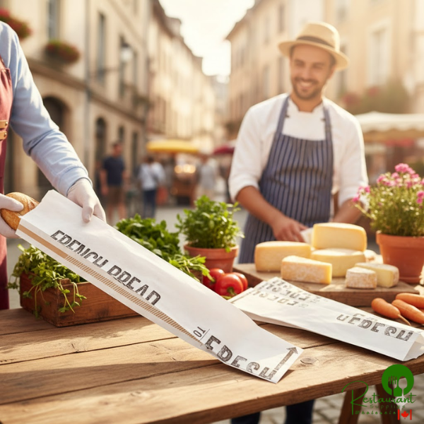 Showcase your freshly baked bread with these Inno-Pak To Go Fresh 4 1/2" x 2 1/2" x 28" french bread bags! Crafted from paper, these bags are designed to keep your french bread and baguettes protected and fresh. The eye-catching design attracts customer attention and adds a modern touch to your to-go offerings.