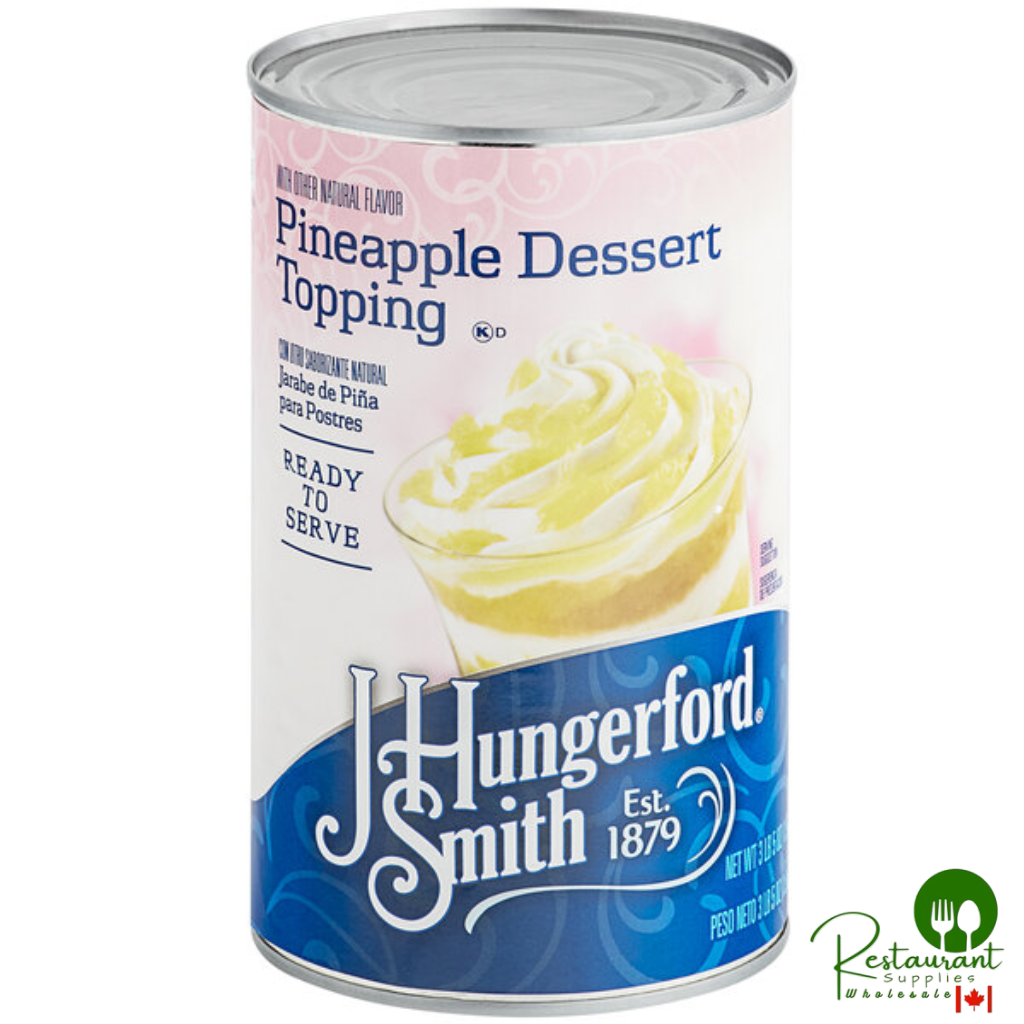 Use this J. Hungerford Smith pineapple dessert topping to brighten desserts with sweet, fruity flavor! Made with juicy pineapple chunks in a sweet, thick fruit syrup, this topping is a quick and easy way to enhance the look, texture, and flavor of just about any dessert.