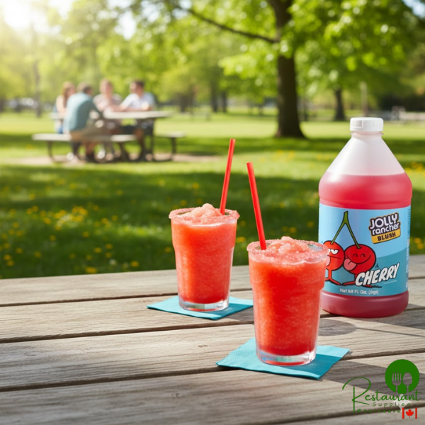 Delight your customers with a frozen treat in their favorite candy flavor with this Jolly Rancher cherry slushy 5:1 concentrate! This premium concentrate gives you an easy and convenient way to create mouthwatering slushies, granitas, or cocktails with a nostalgic, craveable Jolly Ranchers flavor.