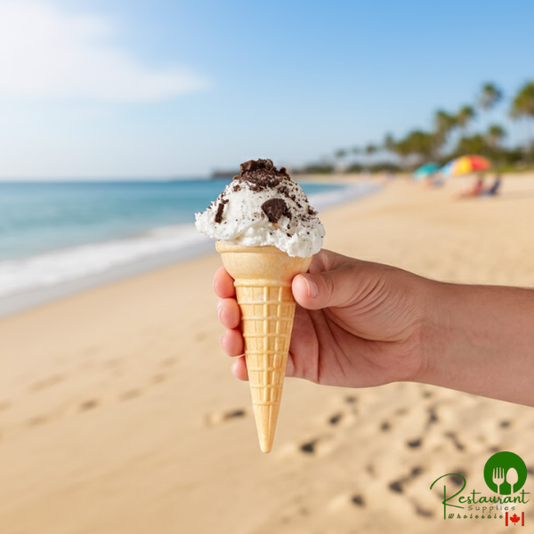 These cake cones are made with a combination of three flours: pastry, cake, and tapioca. This combination produces a lighter, flakier cone with a subtly sweet taste that does not overpower the ice cream. The fresh, crispy, crunchy taste of these cones will tempt your customers to order another ice cream scoop!