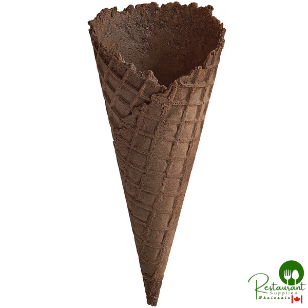 Serve perfectly-sized scoops of crowd-pleasing ice cream in these Joy chocolate ice cream waffle cones. Made with wholesome ingredients, these cones are a delicious way to increase frozen treat sales at your establishment. With their rich cocoa flavor, these unique waffle cones give your business a fun, tasty cone option that sets your shop apart from competitors.