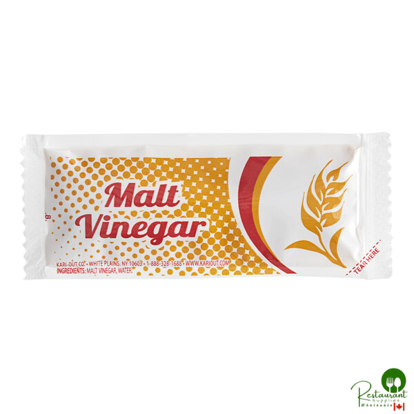 Add bold flavor to food with this Kari-Out Company malt vinegar portion packet. With a tangy, malty flavor and subtle sweetness, malt vinegar is an English staple and can be used to enhance a variety of classic dishes. This product is perfect for drizzling over sandwiches, french fries, or fried fish.