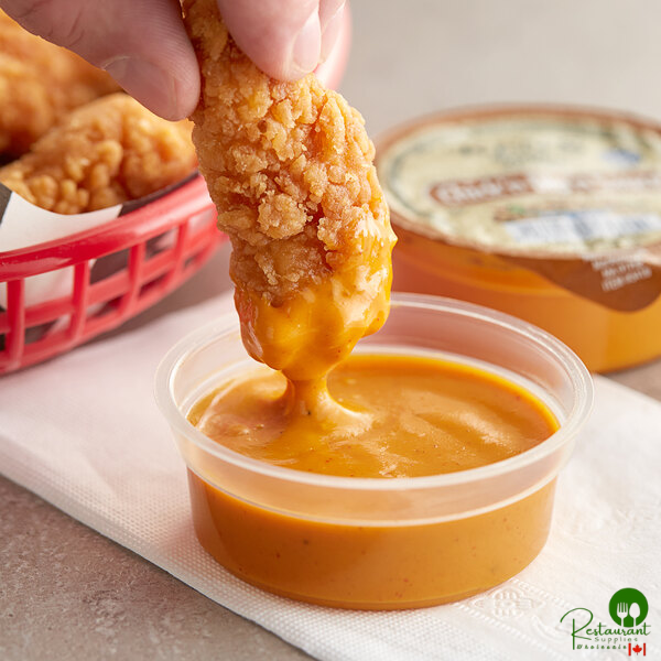 This pre-portioned cup offers enhanced sanitation over measuring out individual cups of chick'n dip'n sauce, making it a safe choice for your establishment. Each cup maintains freshness while providing consistent portion control for optimal food safety standards.
